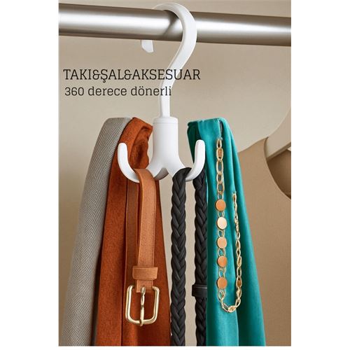 12×6 cm boyutlarında, bu çok amaçlı askı; evinizin gizli kahramanı olmaya aday! 360 derece dönebilen başlığı sayesinde dolap içi, banyo, mutfak gibi alanlarda maksimum erişim ve düzen sağlar. 12 adet kancasıyla kemer, eşarp, fular, takı, havlu, sünger gibi eşyalarınızı tek bir noktada toplar.