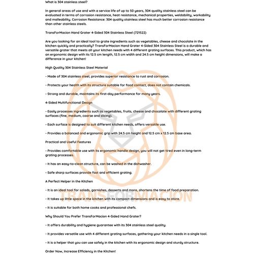 – Ergonomik tasarımı ve sağlam yapısıyla mutfakta güvenle kullanabileceğiniz bir yardımcıdır.