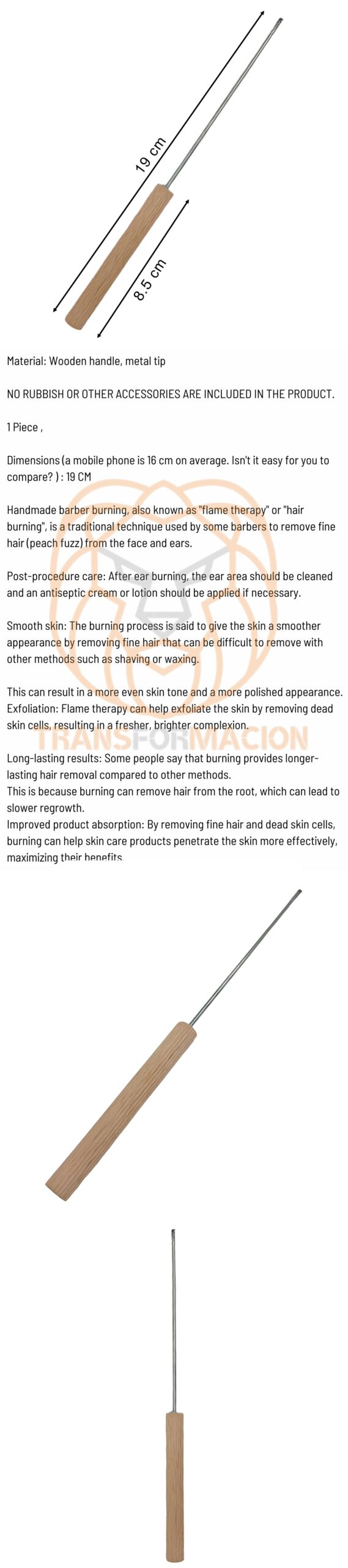 El yapımı berber yakma, “alev tedavisi” veya “saç yakma” olarak da bilinir, bazı berberlerin yüz ve kulaklardan ince tüy (şeftali tüyü) çıkarmak için kullandıkları geleneksel bir tekniktir.