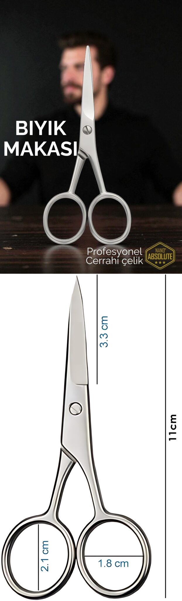 Nano Absolute Professional bıyık ve kaş makası, yüz bölgesindeki hassas tüylerin şekillendirilmesi için özel olarak tasarlanmış yüksek kaliteli bir bakım aracıdır.