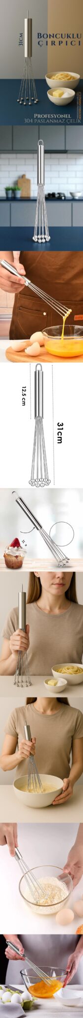Kullanım sonrası temizleyerek hijyenik bir kullanım sağlayın. Bu Profesyonel 304 Paslanmaz Çelik Çırpıcı, mutfakta hassas çırpma işlemlerini ve rahat kullanım sağlayan mükemmel bir yardımcıdır!