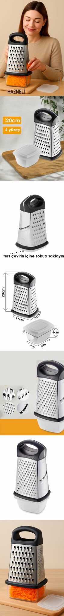 Yüzeyler: Kalın rende, ince rende, dilimleyici, zester
