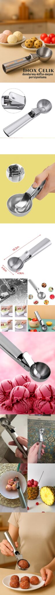 Bu paslanmaz çelik dondurma kaşığı, iç mekanizması sayesinde dondurma, püre, kurabiye hamuru gibi gıdaları kolayca porsiyonlamanızı sağlar.