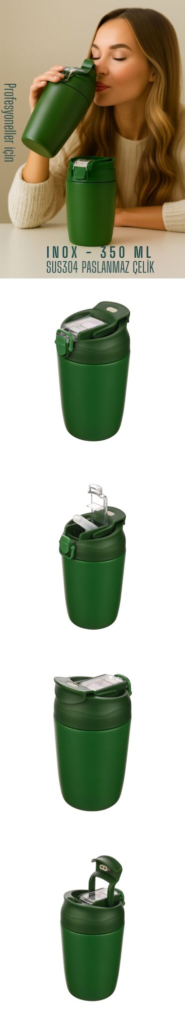 Inox Çelik Kahve Bardağı - 350 ml  SUS304 Çelik Termos Profesyonel YEŞİL. Kişisel Ürünler ve Hobi Ürünleri.