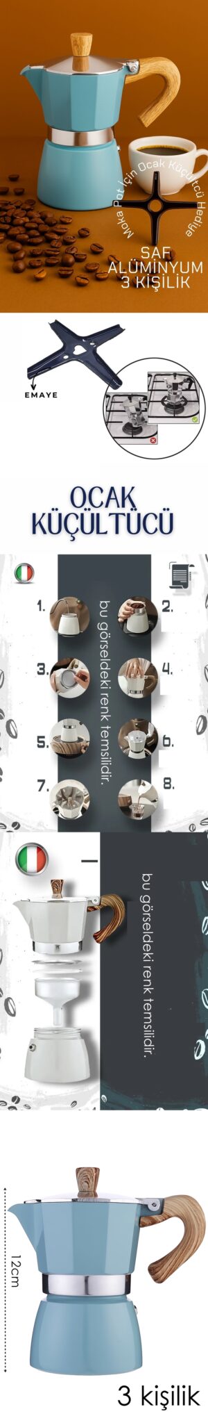 Ana Sayfa Ev & Yaşam Mutfak Ürünleri Çay Kahve Yardımcıları Modacar Italyan Moka Pot – 6061 Saf Alüminyum Ahşap Saplı – 3 kişilik MAVİ