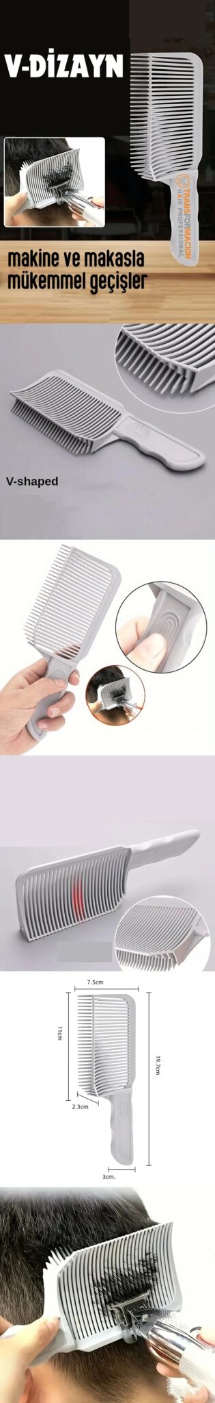Kuaför Berber V Dizayn Kavisli Kontur Kesim Tarağı. Kuaför Berber ve Tarak ve Makaslar.