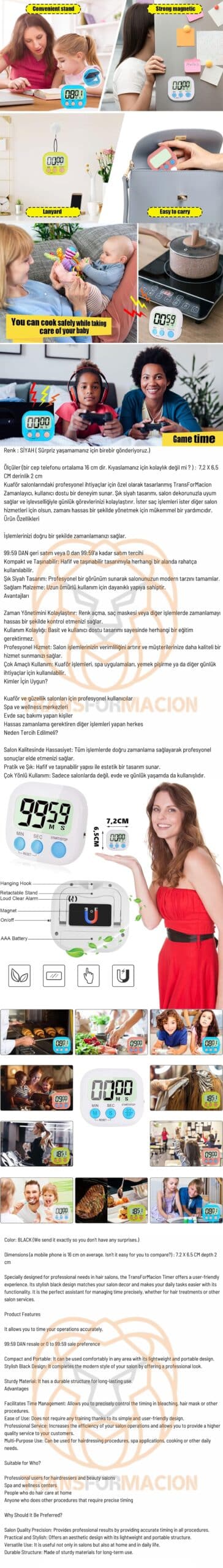 Zaman Yönetimini Kolaylaştırır: Renk açma, saç maskesi veya diğer işlemlerde zamanlamayı hassas bir şekilde kontrol etmenizi sağlar.