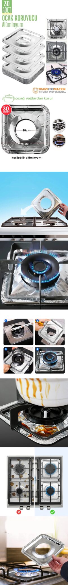 Mutfakta temizlik artık çok daha kolay! Bu 30 parçalı alüminyum ocak koruyucu seti, ocak gözlerinin etrafını yağ, kir ve yiyecek döküntülerinden korur.