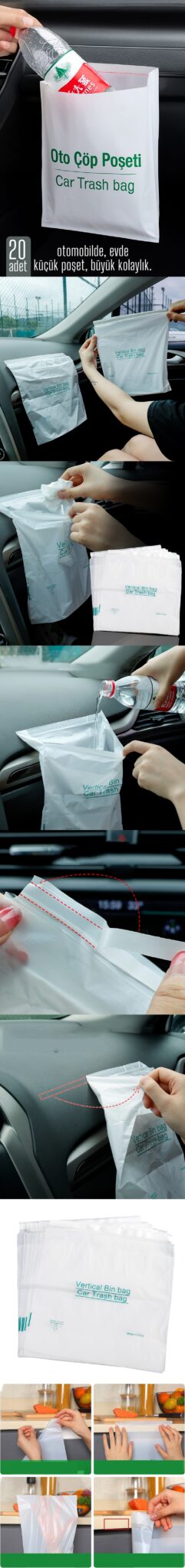 Bu pratik çöp poşeti seti, hem araç içinde hem ev ortamında hijyenik ve düzenli bir kullanım sunar.
