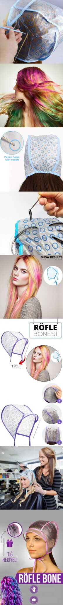 Profesyonel röfle uygulamaları için özel olarak tasarlanmış bu bone, saç renklendirme işlemlerinde maksimum kontrol ve konfor sunar.