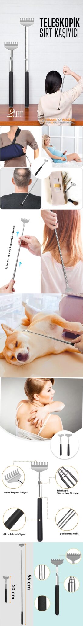 Teleskopik Sırt Kaşıyıcı – 2’li Set | 20 cm’den 56 cm’e Uzayan Paslanmaz Yardımcı