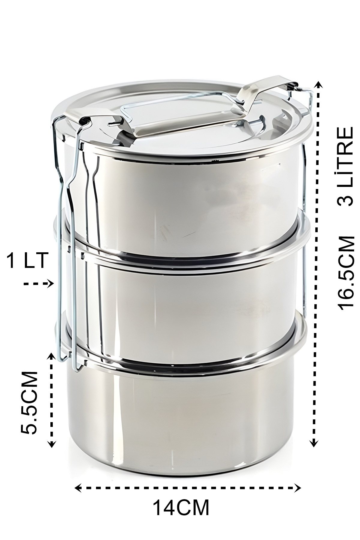 Sefer Tası Yemek Kabı Paslanmaz Çelik 3 Katlı 14 cm 3 LİTRE